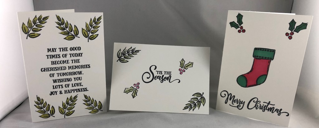 Using our pre-cut notecards in Whisper White, some Memento Black Ink, and a few other coloring tools, I created some notecards that can help spread some good holiday feelings this year (seriously, I think we all need some good feels right about now….)
