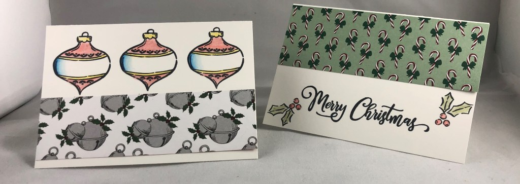 Right now, Stampin’ Up! it having it’s annual DSP sales – 15% off select papers. I used ‘Tis the Season in the above cards.
