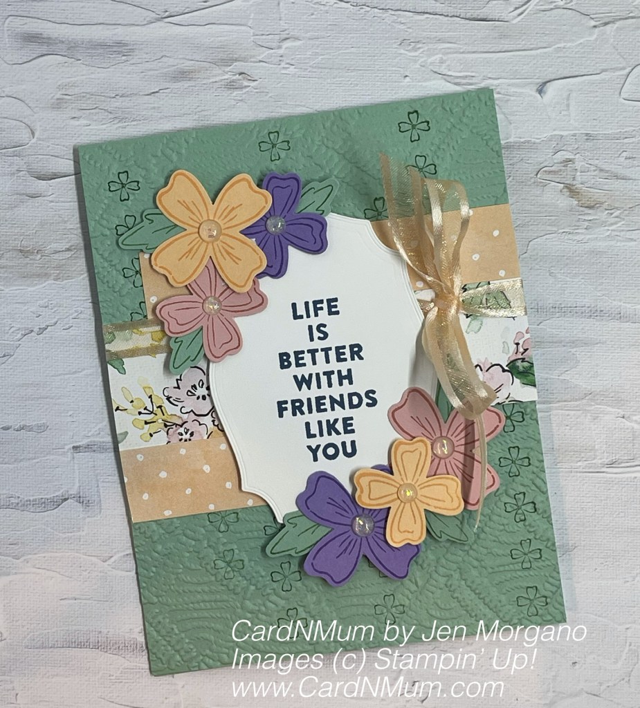 This card uses the Flowers of Friendship bundle (stamp/punch) – what a sweet way to bright someone’s day.