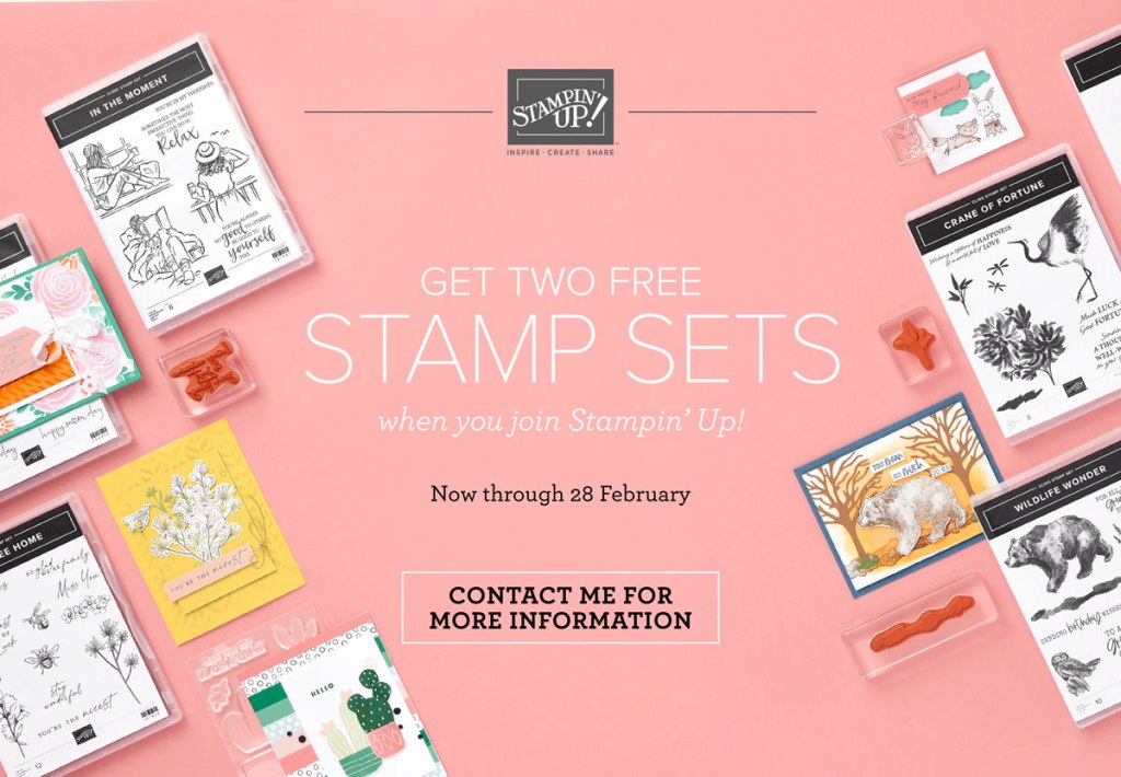 Of course, if you’d like to join my team on crafty adventures, you can order now, too! Joining during a Sale-A-Bration period (which it is now through the end of February) does have some added perks. For this cycle of Sale-A-Bration, after you’ve picked out your items for your starter kit ($125 worth of product for $99 plus business items), you’ll be able to choose 2 more stamp sets for free!