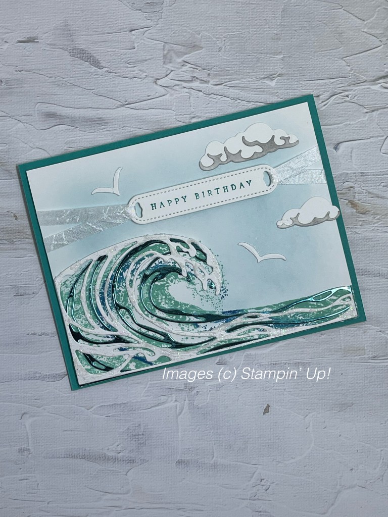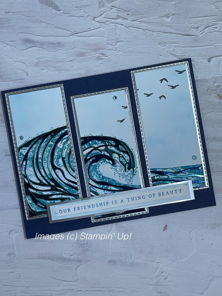 This card, by Teresa Neuleib, uses the foil in the Waves of the Ocean collection and it’s so pretty: