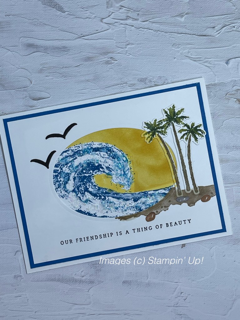 This card, by Tina Wardell, has some really nice texture on the wave – shimmery embossing paste to the rescue: