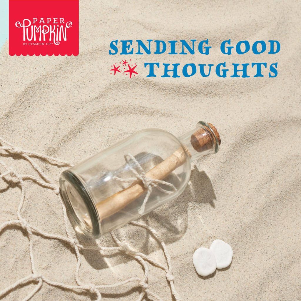 Just in time for beach weather… a Paper Pumpkin kit with a sandy theme! Send a “message in a bottle” to someone you’ve been thinking about.