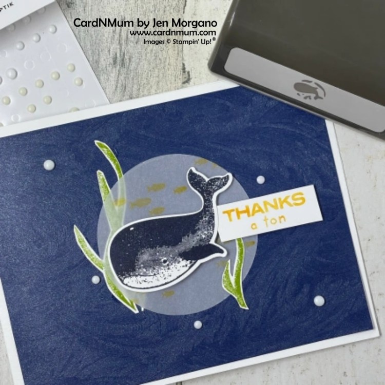 Looking at the Night of Navy piece, my mind turned to the ocean and of course, the Whale Done Stamp Set/Whale Builder Punch combo.