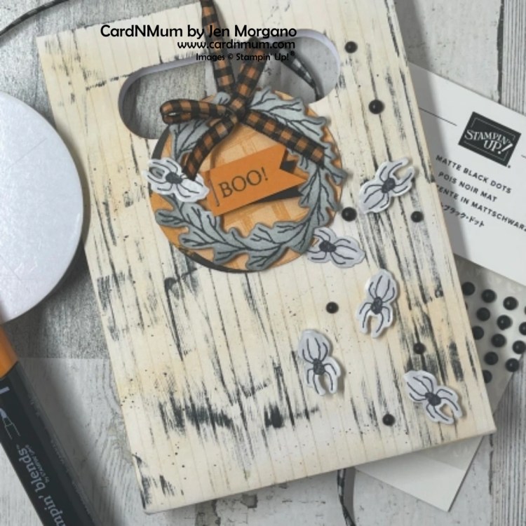 Who doesn’t love a spooky bag? I love ’em! I whipped one up using the Embossed Treat Bags and the Cottage Wreath bundle – super fun!