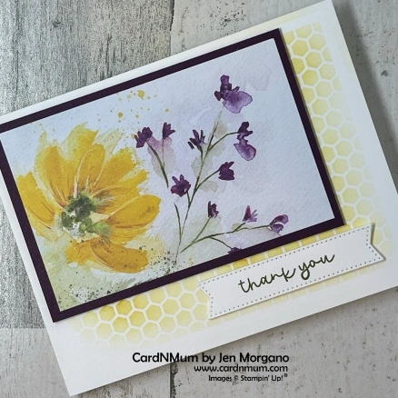 Then is was just a matter of modifying each one a little (but I do love all of the designs). I added a linen thread bow to one. I added Solid Faceted Gems to another. I stamped a background of flowers and leaves on a third. I used the free gifted honeycomb piece as a mask to make a cool background on the fourth.