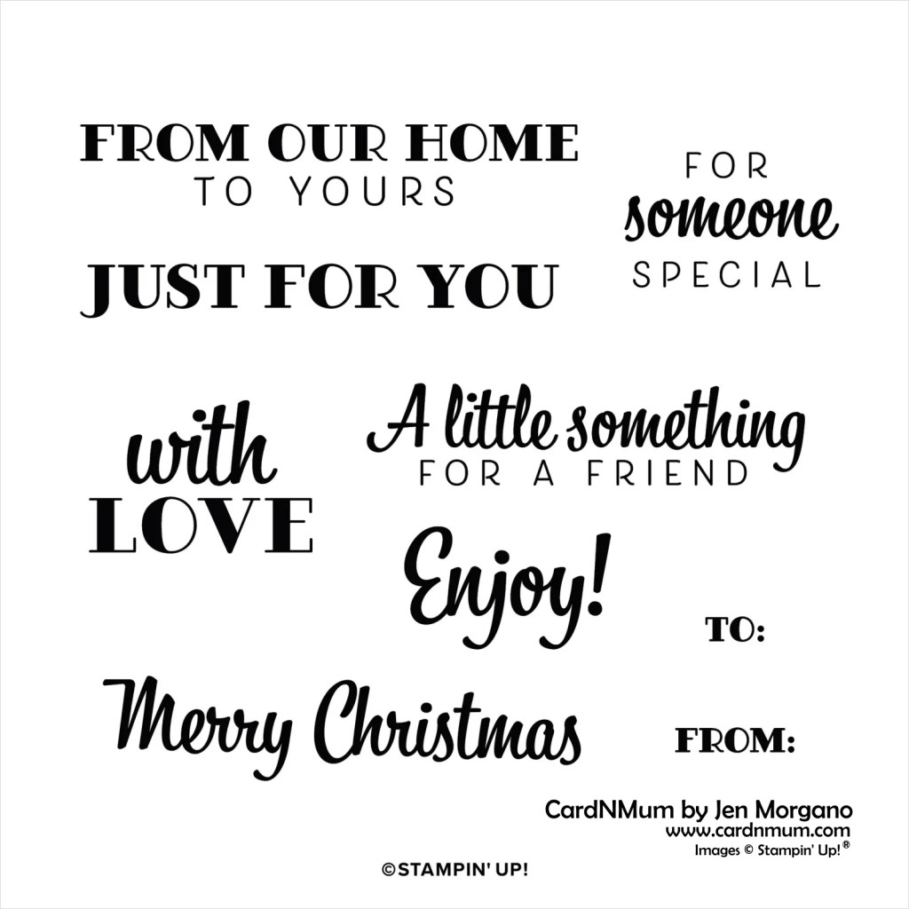 The stamp set also allows you to personalize your tags – you can switch the greetings up. You can also make further use of those stamps and make your own cards, tag, whatever you’d like!