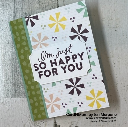 I’m doing some more swap prep for this weekend’s OnStage gathering in Pittsburgh. I made this one using the Design-A-Daydream Designer Series Paper and the Good Feelings stamp set.