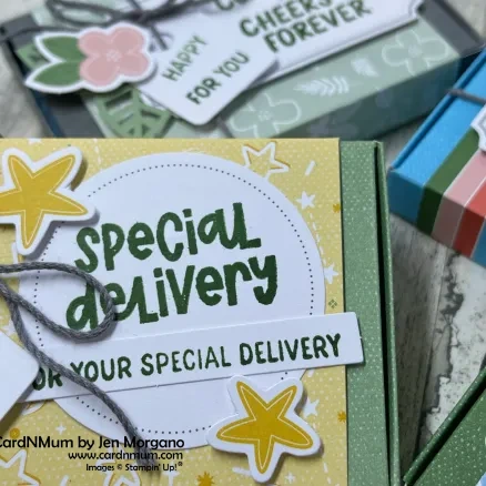 The colors are so fun!! And do you know what the best part was? Each box and overwrap was reversible so the combinations are endless. The stamp set covered a lot of ground too -perfect for other uses!