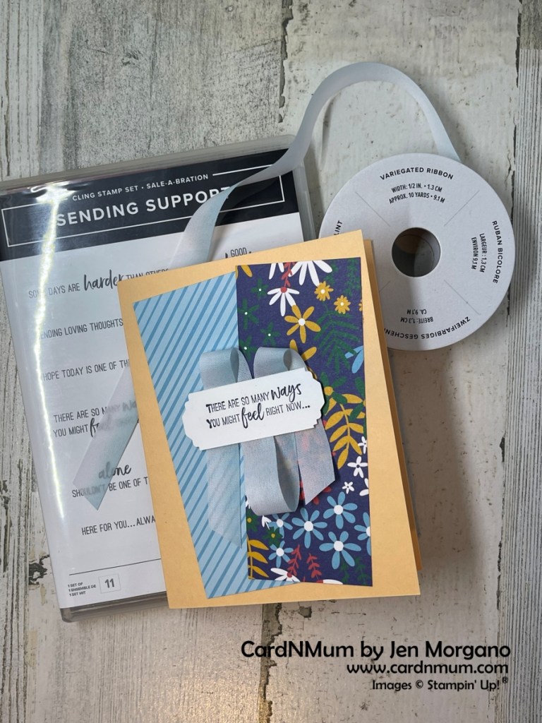 - Additional Tools/Supplies: Balmy Blue/White Variegated Ribbon (10”); Lovely Labels Pick a Punch