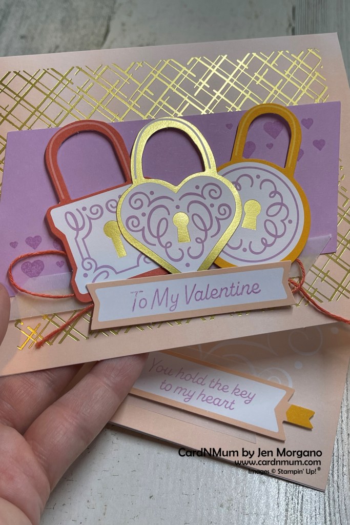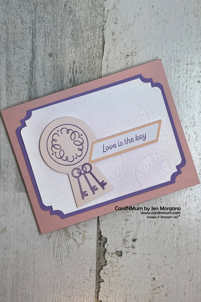 I used the ‘keyhole’ cut out from the original designs as an element on this card – I love to use all parts of the Paper Pumpkin kit.