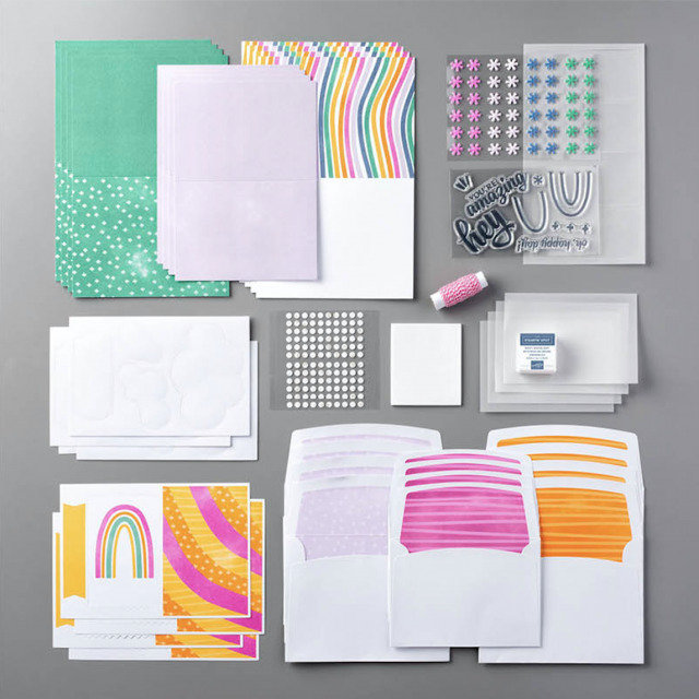 - All the supplies you need to create 9 card, 3 each of 3 designs, plus 9 coordinating envelopes.