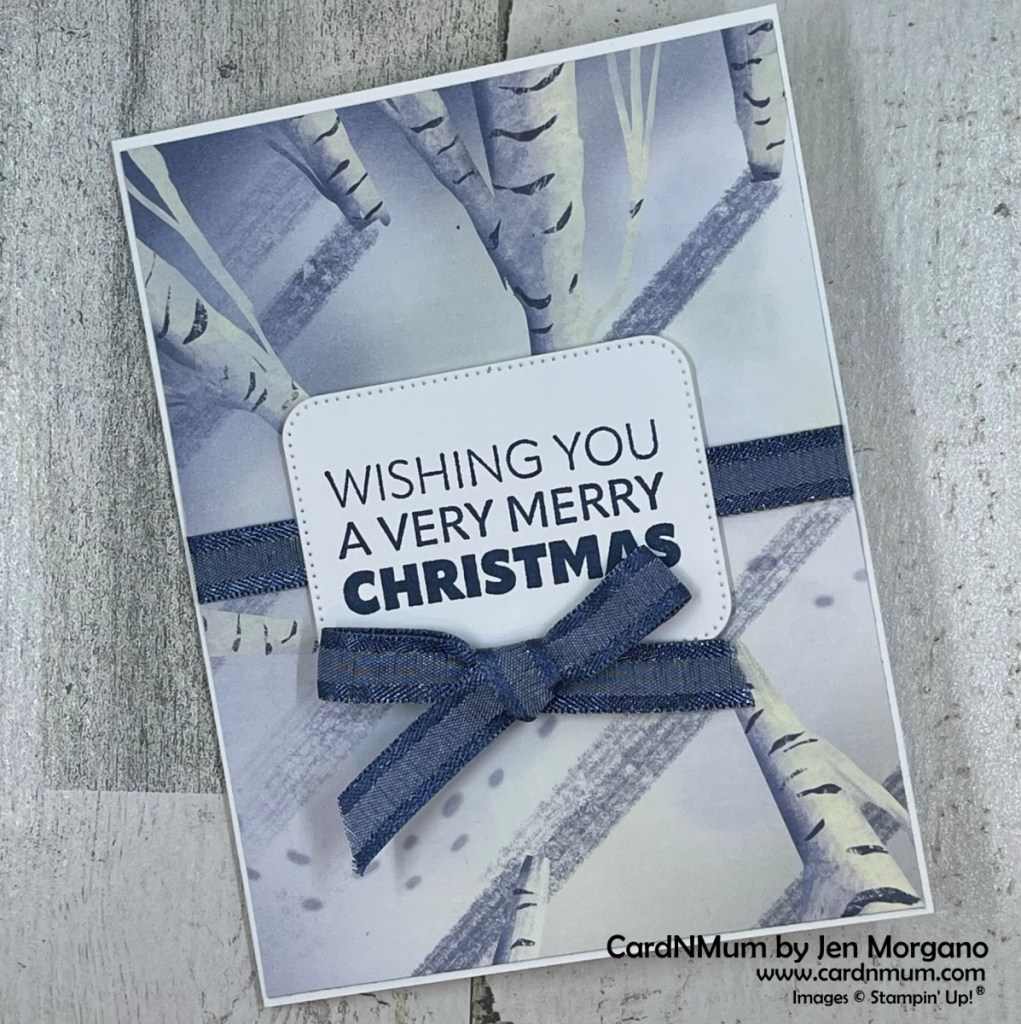 You cannot get any easier than this card… I mean you can – but anyway…. This card uses the One Horse Open Sleigh Designer Series Paper, some ribbon, and die. The paper really does all the work for you – it’s so awesome.