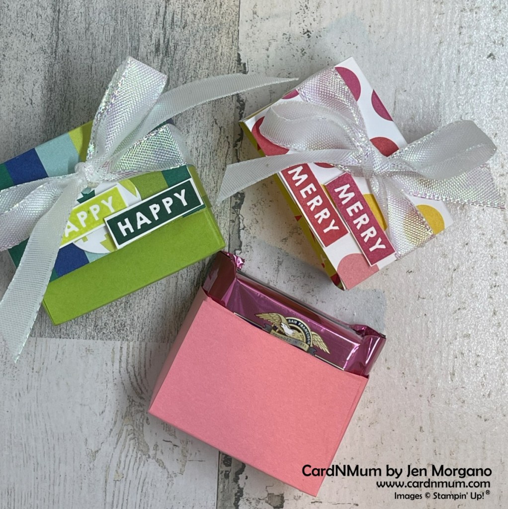 Here’s a quick little box that holds 3 Ghirardelli chocolate squares: