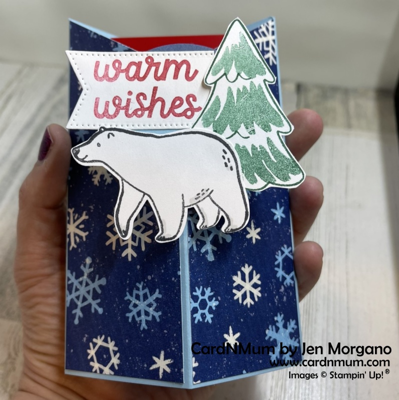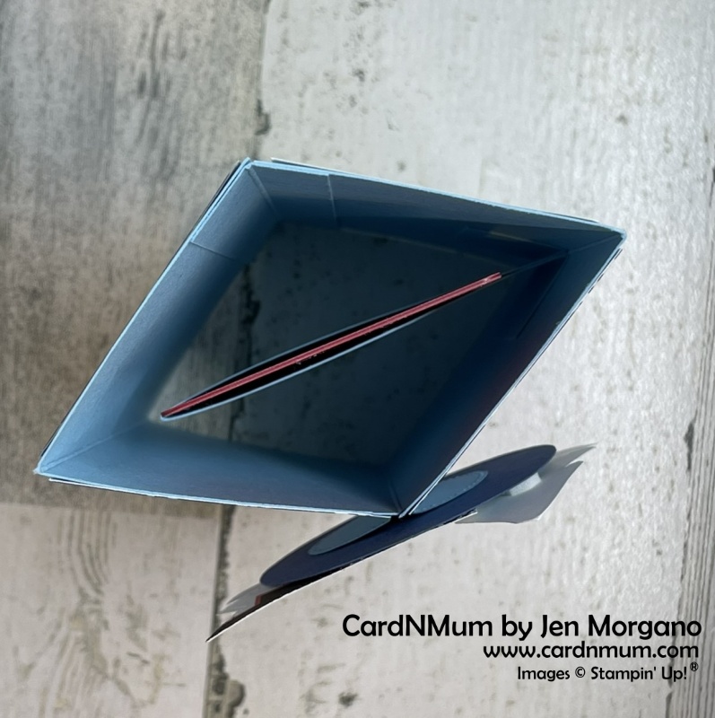Here is the card in it’s various stages: flat, popped up, and from above: