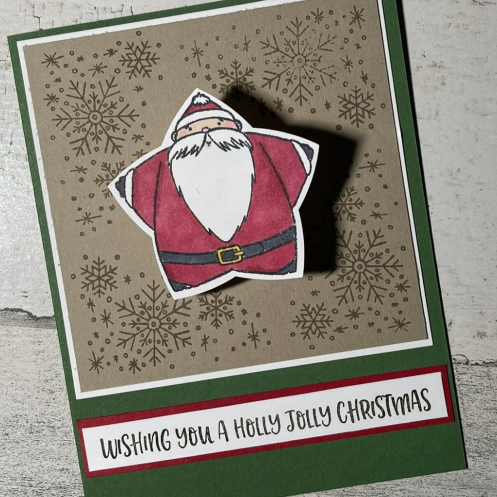 I adore the new Sweetest Star stamp/punch set (available 9/4/2024)– it’s just too cute. When I was designing this card for my New Catty Stamp Class, I couldn’t decide which image to use. I settled on Santa. But they are all so cute – take a look: