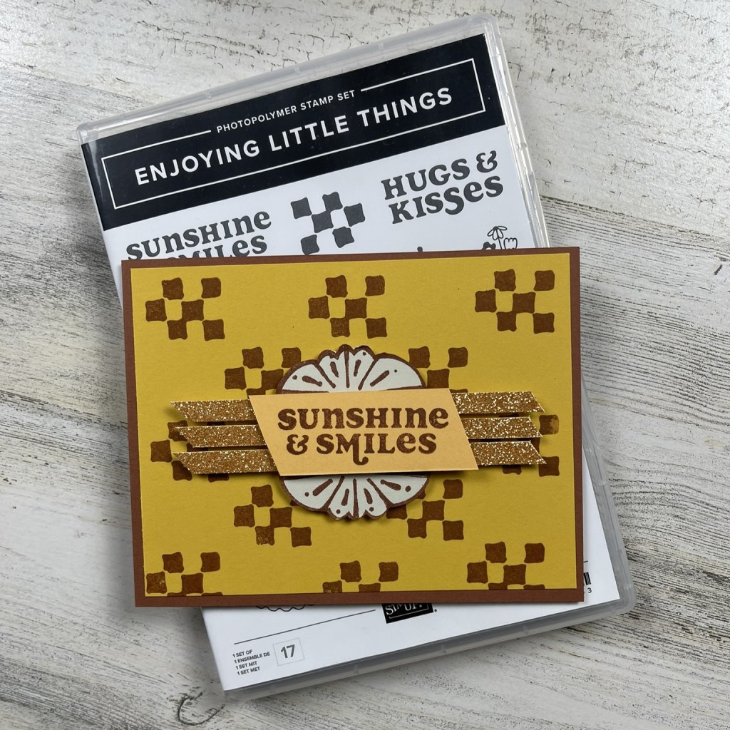 Do you every struggle with not having a DSP you want for your card? You can make a background using just ink, stamps, and paper to suit your needs. I whipped this one up using some Crushed Curry paper and Copper Clay ink – have you every done this before?