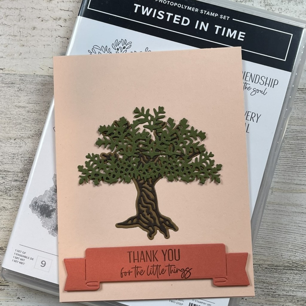 Earlier this week, I shared a simple card made with the Twisted in Time bundle. Today, this card steps it up just a little bit. Instead of just ink and paper, I added in the beautiful dies that come with the set.