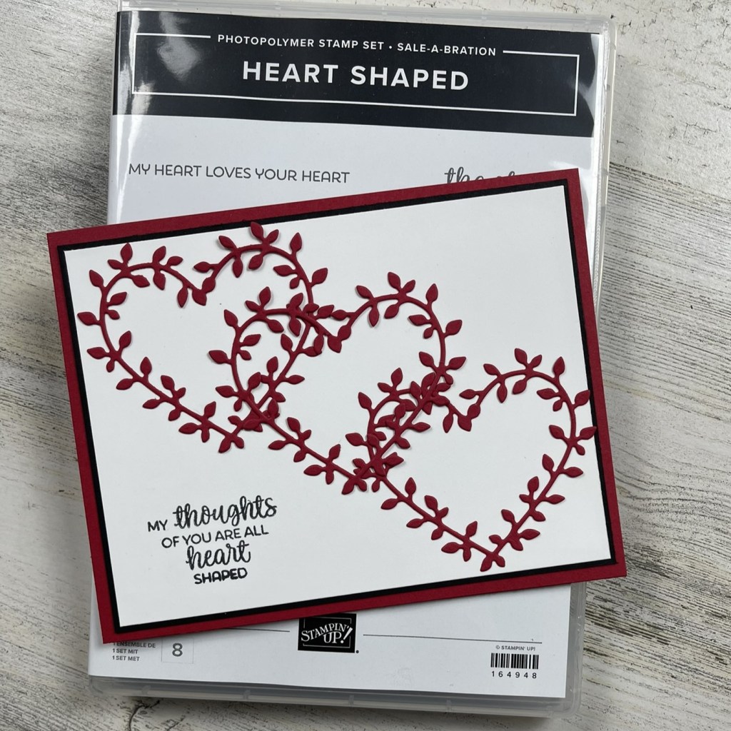 Here is another card made with the Heart Shaped Bundle from Stampin’ Up! I used 3 colors (Basic Black, Basic White, and Real Red) that I always love putting together.