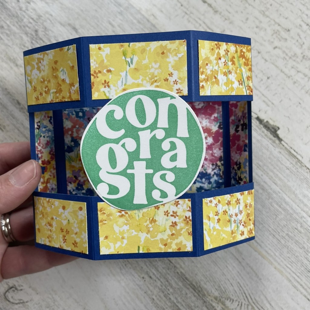 The card goes together pretty quickly, fits in an envelope for mail when it lays flat, but can also be displayed standing up – take a look at it from above: