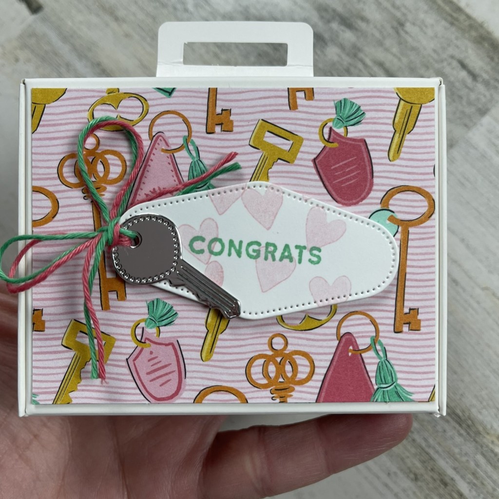 Do not overlook the little suitcase boxes that come with the On the Go Suite Collection – they are really cute and can be used in so many ways! I used this to hold a gift card – check out when you open it: