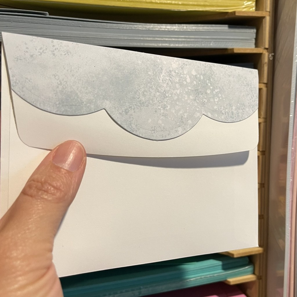 And just to make sure that my whole piece of 6″ x 6″ DSP was used, I took the remaining 2″ x 6″ piece and cut a nice pattern out using the Fancy Border dies. I glued this to the envelope flap: