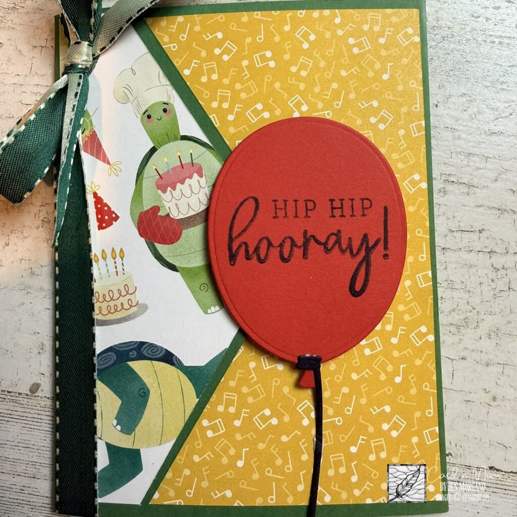 - Front Design: A bold red balloon with the “Hip Hip Hooray!” sentiment takes center stage (That’s the new Balloon Festoon bundle available in early May)